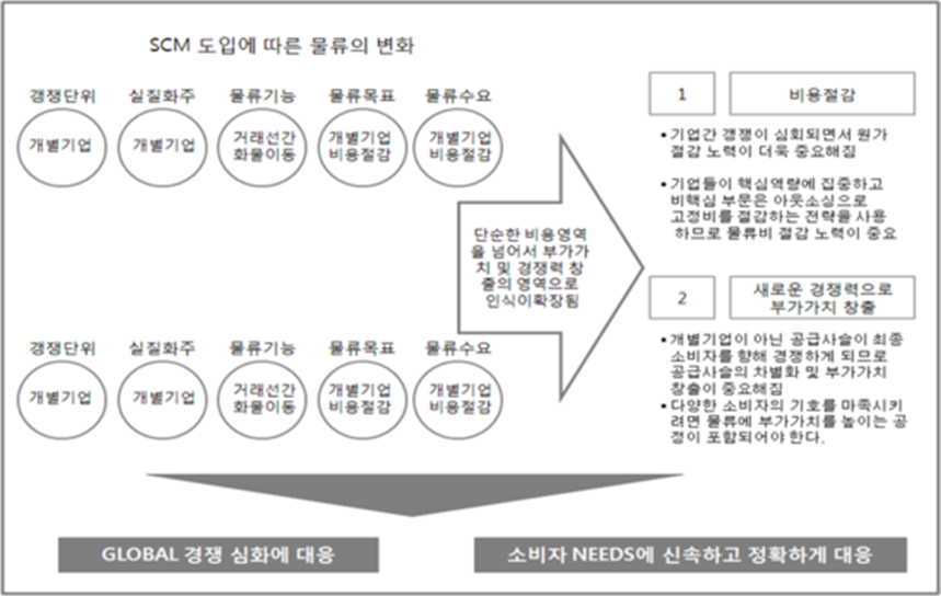 <그림> SCM 도입에 따른 물류의 변화
